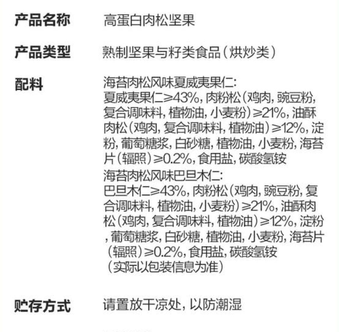 产品名称:高蛋白肉松坚果