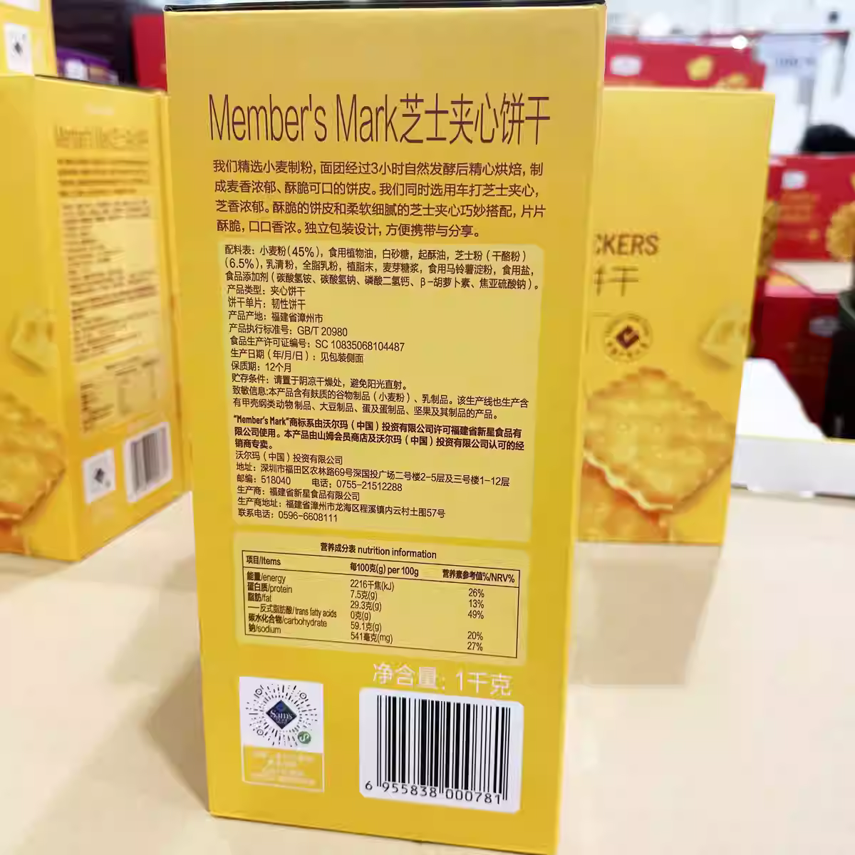 山姆Member‘s Mark 芝士夹心饼干0反式脂肪酸|单包18g