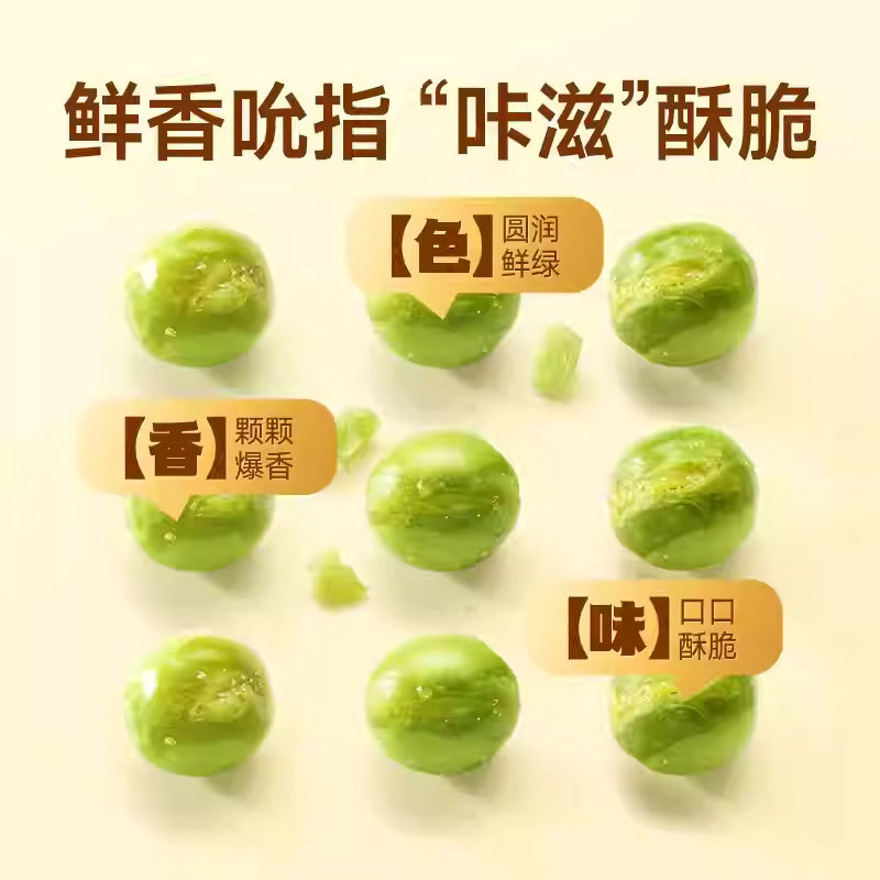 产品内含多枚独立小包装,方便携带与分量控制,适合通勤、旅行、办公小憩及随时补充能量。青豌豆本身富含植物蛋白,是兼顾口感与营养的日常零食选择。